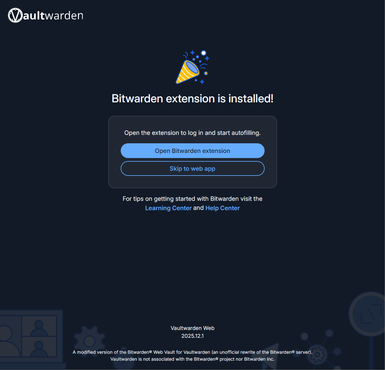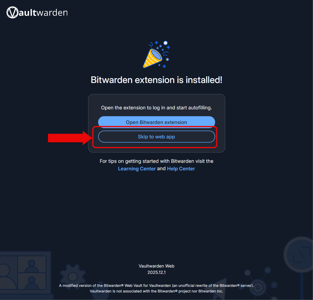 Go ahead and click skip to web app when/if you've finished installing the extension.
