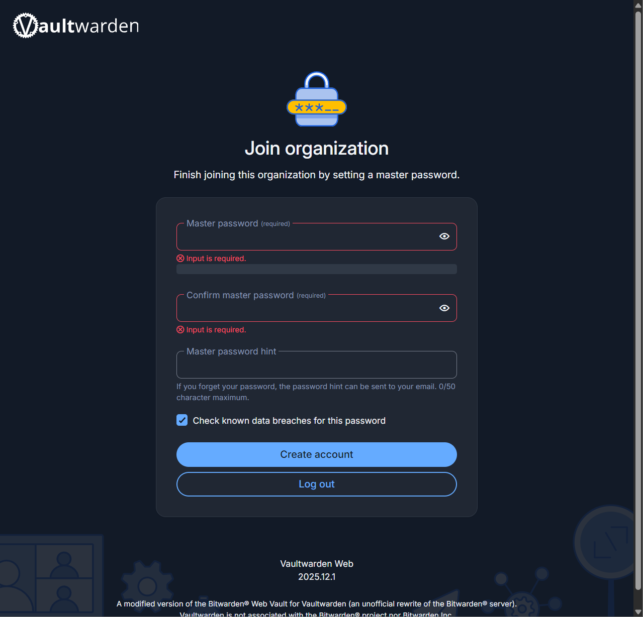 Click create account to finish the process.